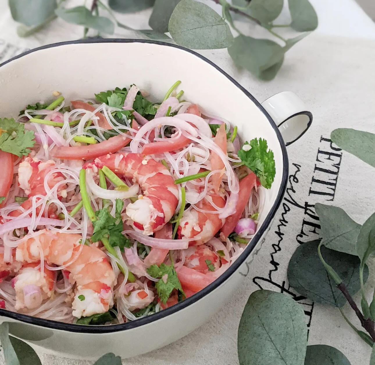 Indulge in our Spicy Prawn Noodles Salad, featuring delicate vermicelli noodles, succulent fresh prawns, crunchy red onions, and fragrant coriander. Our homemade refreshing spicy sauce brings everything together in perfect harmony.Highlights:Fresh and flavorful ingredients